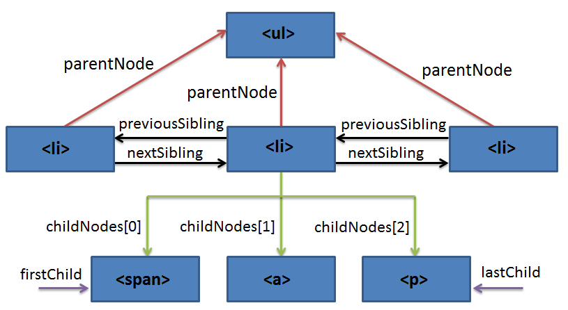 Elementy mają następujące właściwości umożliwiające poruszanie się po tej hierarchii.