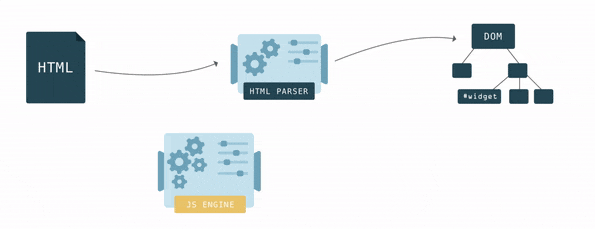 Aby wyświetlić dokument HTML, przeglądarka najpierw konwertuje go do formatu, który rozumie — DOM. Silnik przeglądarki posiada specjalny kod - HTML parser, który służy do konwersji HTML do DOM.