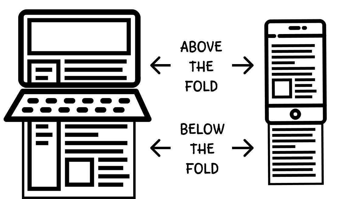Terminy "above the fold" i "below the fold" pochodzą z czasów "offline". Jeśli kiedykolwiek kupiłeś gazetę w kiosku, zwykle była złożona ona na pół, aby przechodnie mogli zobaczyć tylko górną połowę pierwszej strony. Jeśli nie spodoba im się to, co widzą, przejdą obok i sprzedaż spadnie. Podobnie w dzisiejszych czasach ważne jest, aby najciekawsze treści umieszczać na górze strony i ładować je maksymalnie szybko.
