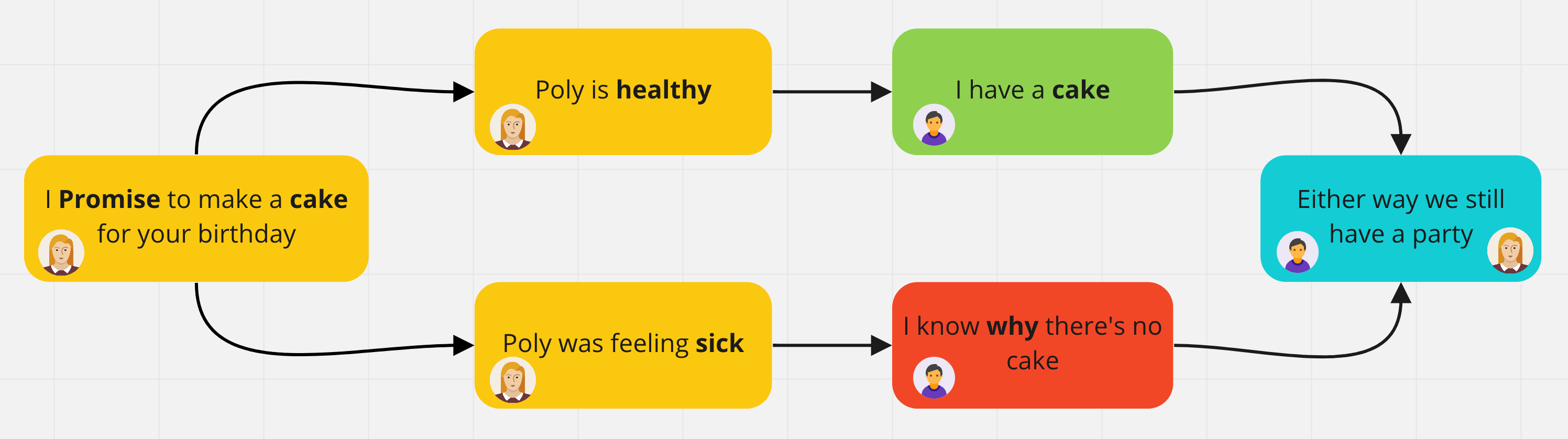 Polly obiecuje upiec ciasto na moje urodziny za dwa tygodnie. Jeśli wszystko pójdzie dobrze i ona nie zachoruje, będę miał ciasto. Jeśli Polly źle się poczuje, nie będzie mogła upiec ciasta. Tak czy inaczej impreza się odbędzie. Sama obietnica nie jest gwarancją jej spełnienia, nie wiemy więc z góry jaki będzie wynik działania. Również w programowaniu są też zadania, których wynik poznamy dopiero w przyszłości.