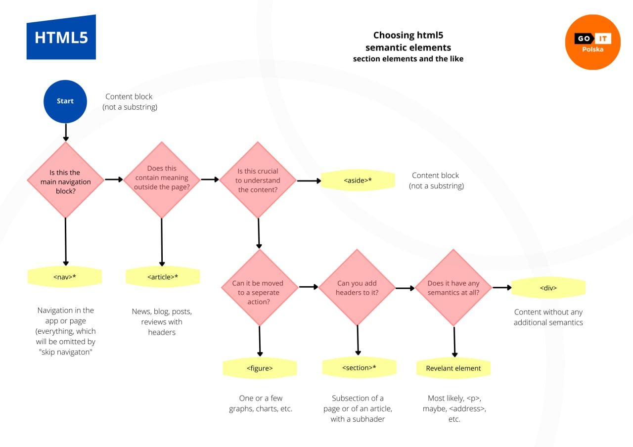 Nie tylko początkujący mogą mieć trudności z podjęciem decyzji, którego znacznika użyć do oznaczania bloku treści w oparciu o jego znaczenie semantyczne. Użyj tego algorytmu, aby wybrać odpowiedni znacznik.