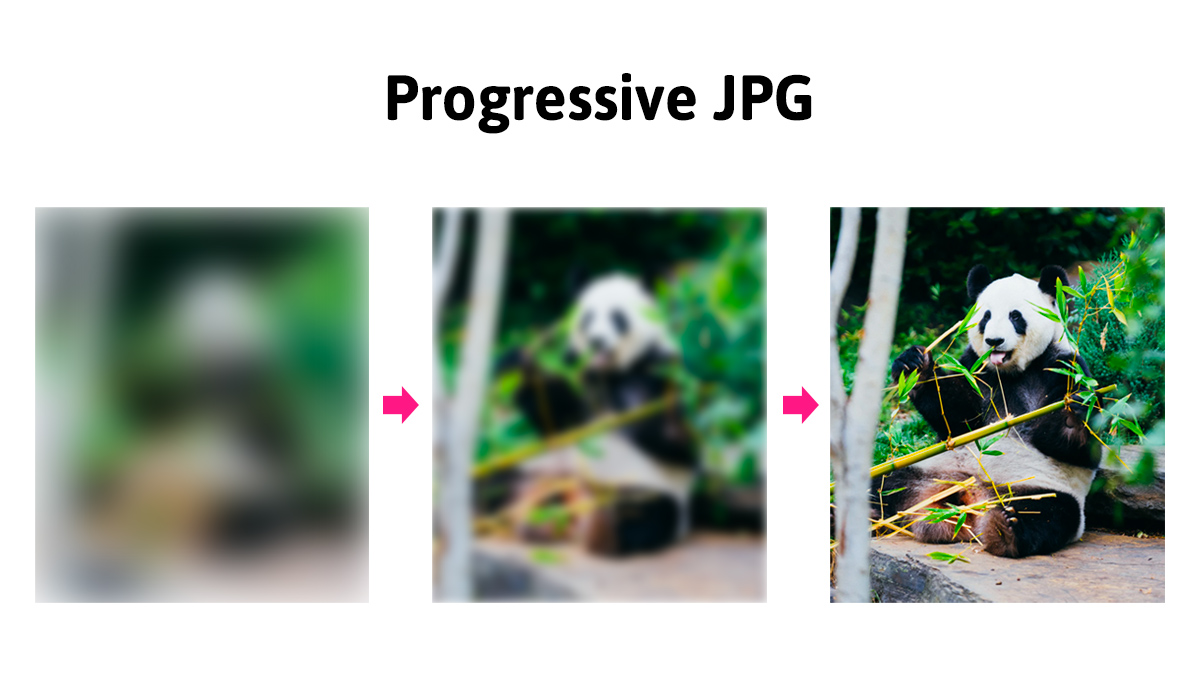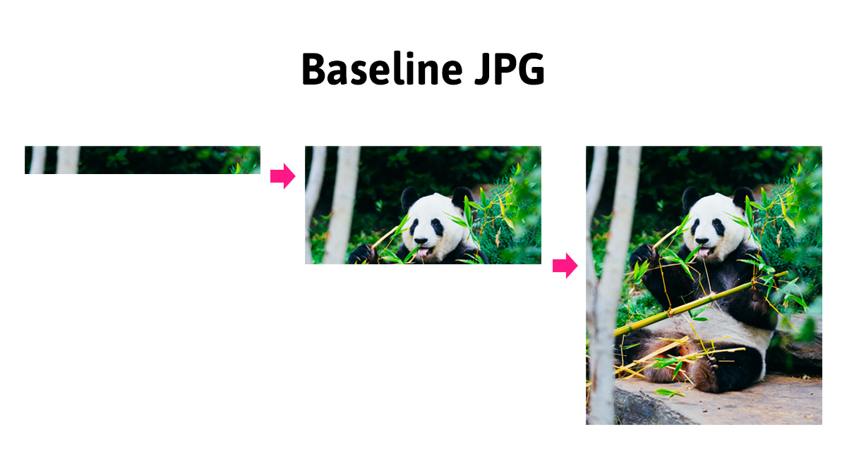 Zwykłe pliki JPEG są ładowane i renderowane w postaci pasków (linia po linii) od góry do dołu. Dla użytkownika stwarza to efekt słabej szybkości ładowania strony. Jest to szczególnie widoczne w przypadku dużych obrazów lub na urządzeniach mobilnych o słabej jakości połączenia sieciowego.