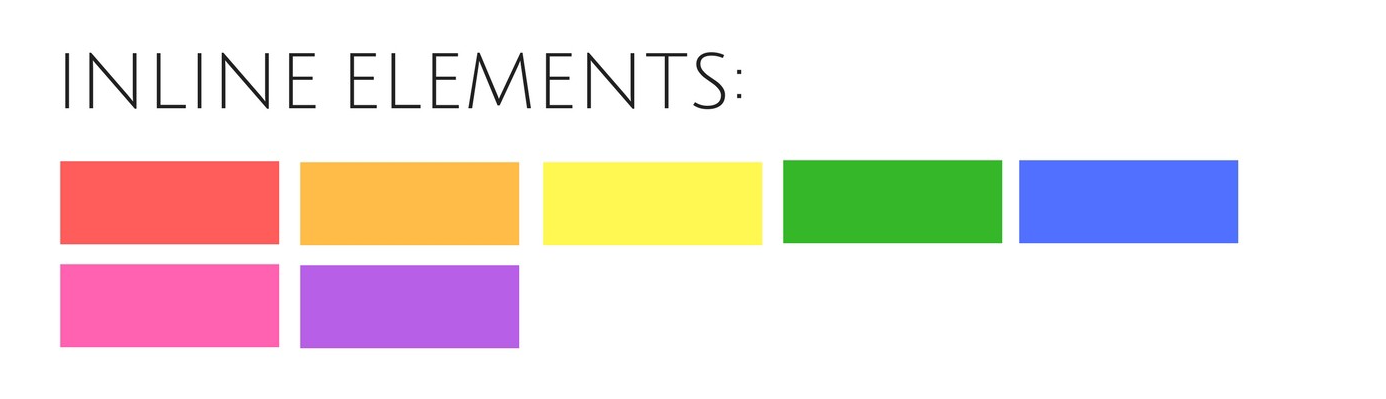 Wszystkie elementy bez wyjątku to prostokątne obszary, które zajmują określone miejsce w tak zwanych „liniach", jak słowa zdania na kartce w linie. Są dwa główne typy elementów - blokowe i liniowe.
