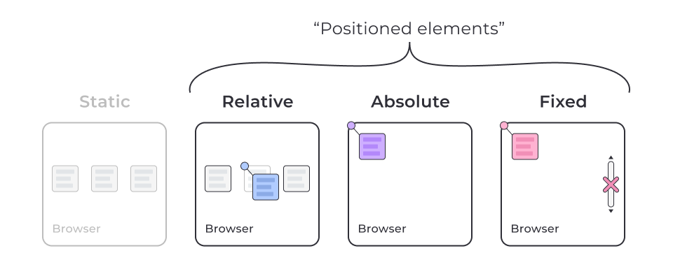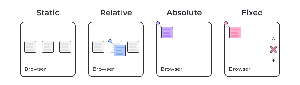 position: absolute | relative | fixed | sticky.