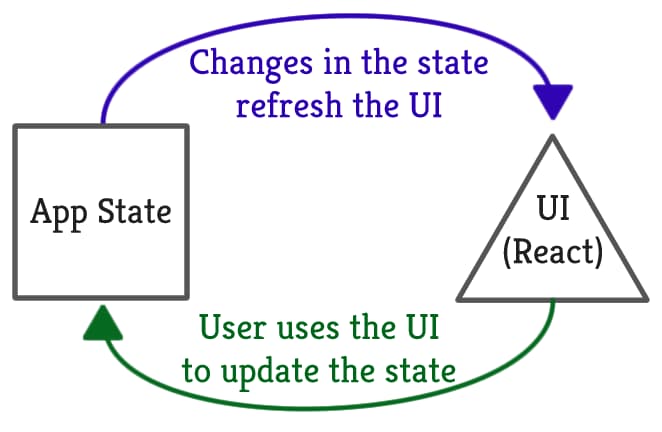 Stan komponentu (state) pozwala nam dynamicznie aktualizować interfejs użytkownika w odpowiedzi na jego działania. Za każdym razem, gdy zmienia się stan komponentu (lub propsy), wywoływana jest metoda render(). W stanie powinniśmy przechowywać jedynie minimalny, niezbędny zestaw danych, potrzebny do prawidłowego zaktualizowania interfejsu użytkownika.