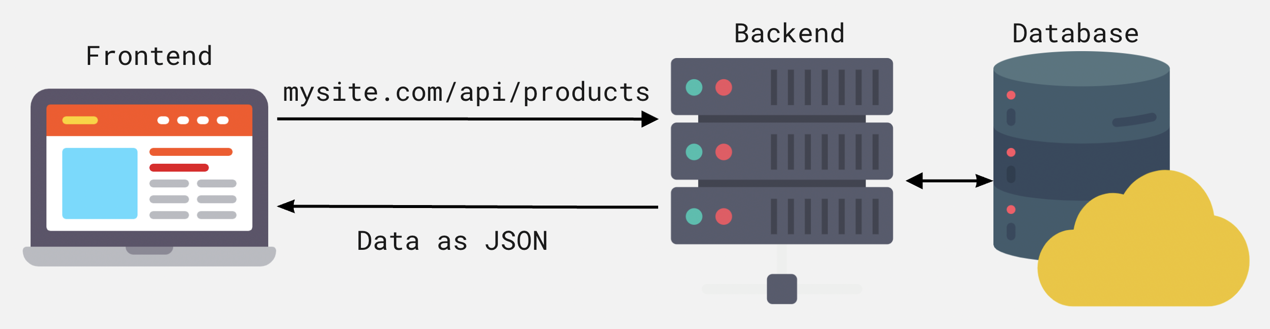 Do tej pory pracowaliśmy z danymi lokalnymi, które były przechowywane w pamięci zakładki przeglądarki lub w lokalnym magazynie. W praktyce ogromna większość danych aplikacji przechowywana jest w bazie danych w backendzie i jakiekolwiek operacje na nich są wykonywane przy pomocy zapytania HTTP.